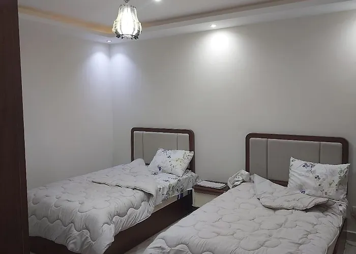 The 200 m² Luxury Apartments 1 Km From Pyramids includes a balcony and a fully equipped kitchen with air conditioning for utmost comfort.